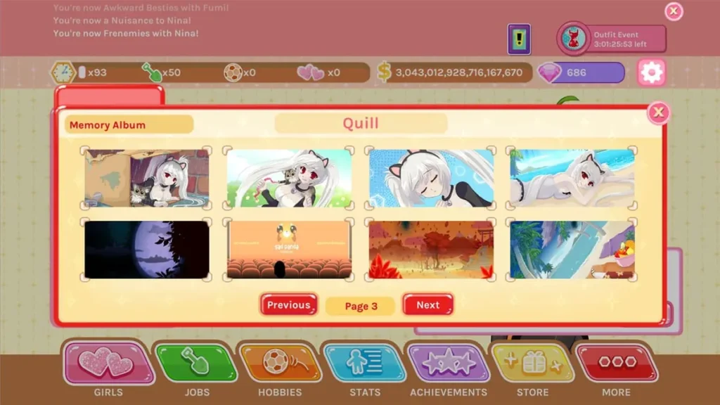 - The Affection Grind: Affection is the gatekeeper. You raise it primarily through gifts (see above!) and later, by completing their unique quests. Keep an eye on the “Phone” tab for texts and tasks from unlocked girls—completing these often gives big affection payouts.